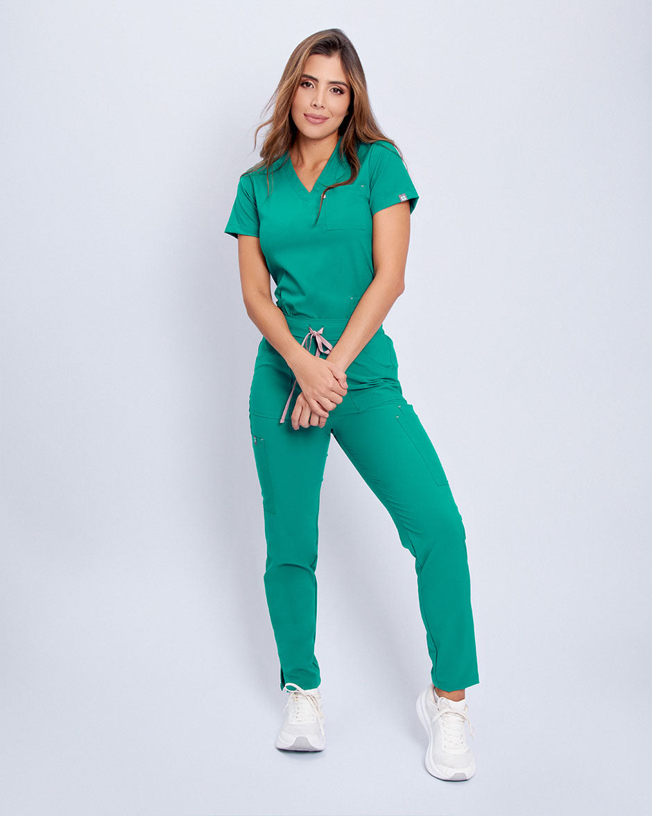 La blusa GALAXY tiene un escote en V con un diseño súper funcional de cinco bolsillos, uno en la parte superior izquierda y dos en cada uno de los laterales de la parte inferior. Es un esencial que complementará tus scrubs por mucho tiempo, pues su silueta y su funcionalidad, hacen que sea versátil, atemporal y cómodo para tus espacios de trabajo.