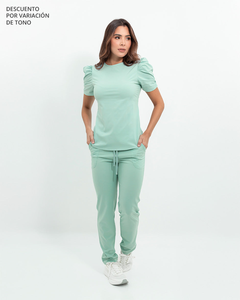 La referencia NEW SKY es una blusa de cuello redondo con un detalle super femenino en la manga tipo recogido. Es una prenda esencial con un toque de magia que la hace increíble.