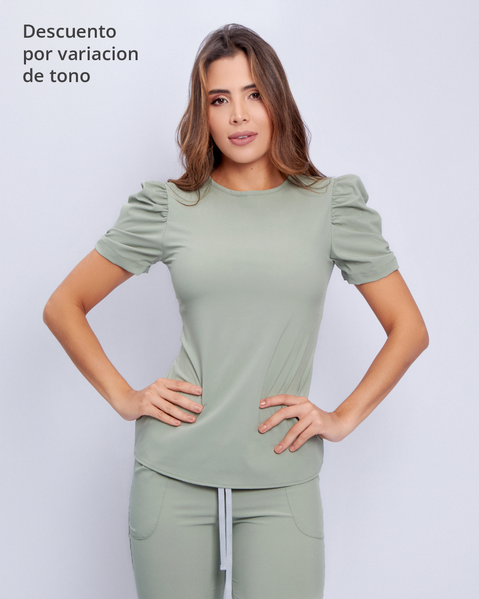 La referencia NEW SKY es una blusa de cuello redondo con un detalle super femenino en la manga tipo recogido. Es una prenda esencial con un toque de magia que la hace increíble.