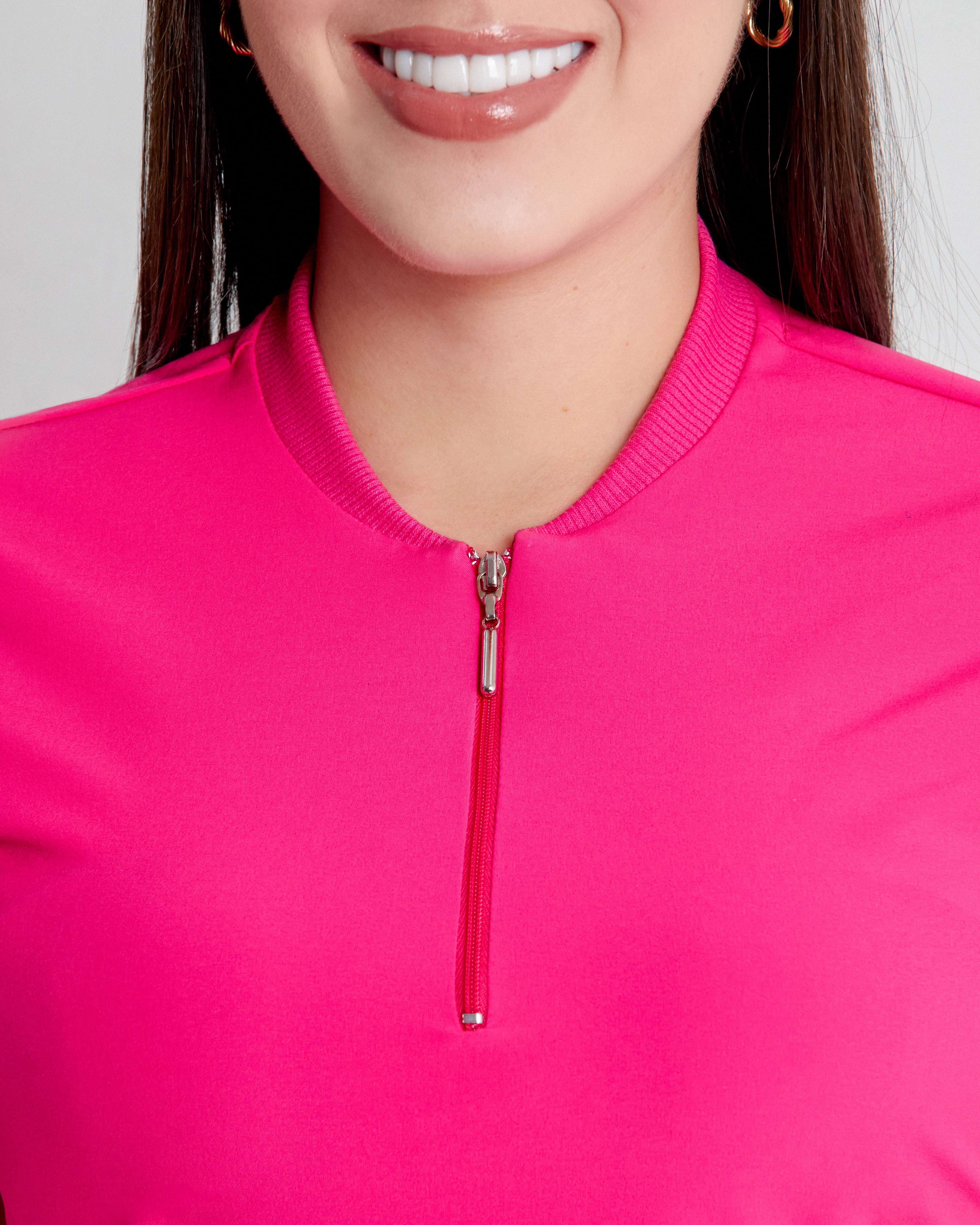 La blusa PISCIS es una prenda súper cómoda y versátil. Es de manga corta y cuenta con un cuello alto que puedes ajustar respecto al escote mediante una cremallera. Es un diseño fresco que funciona perfectamente para tus scrubs y para tu día a día.