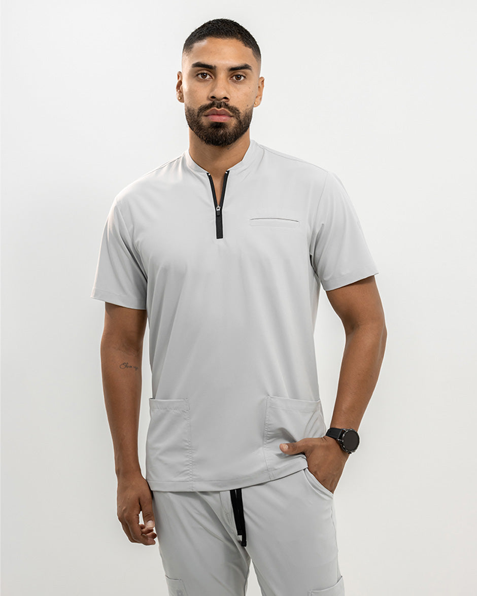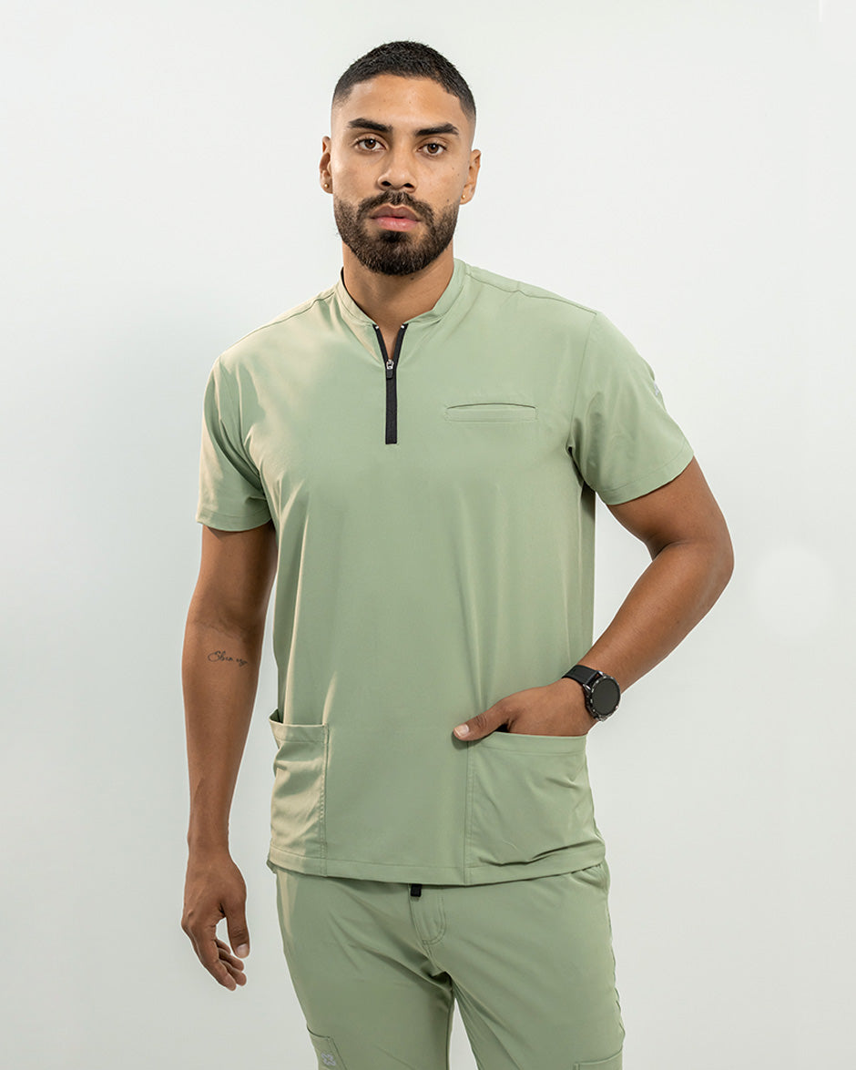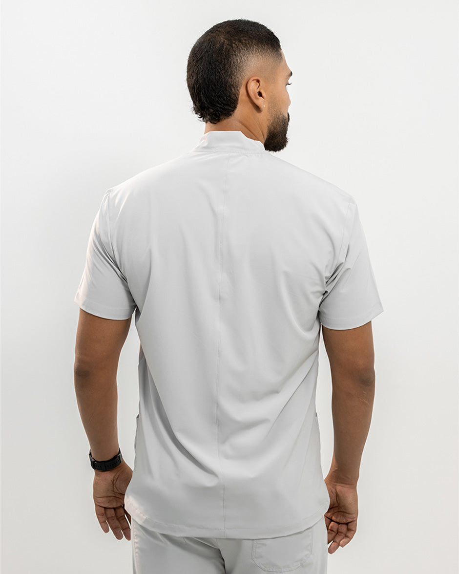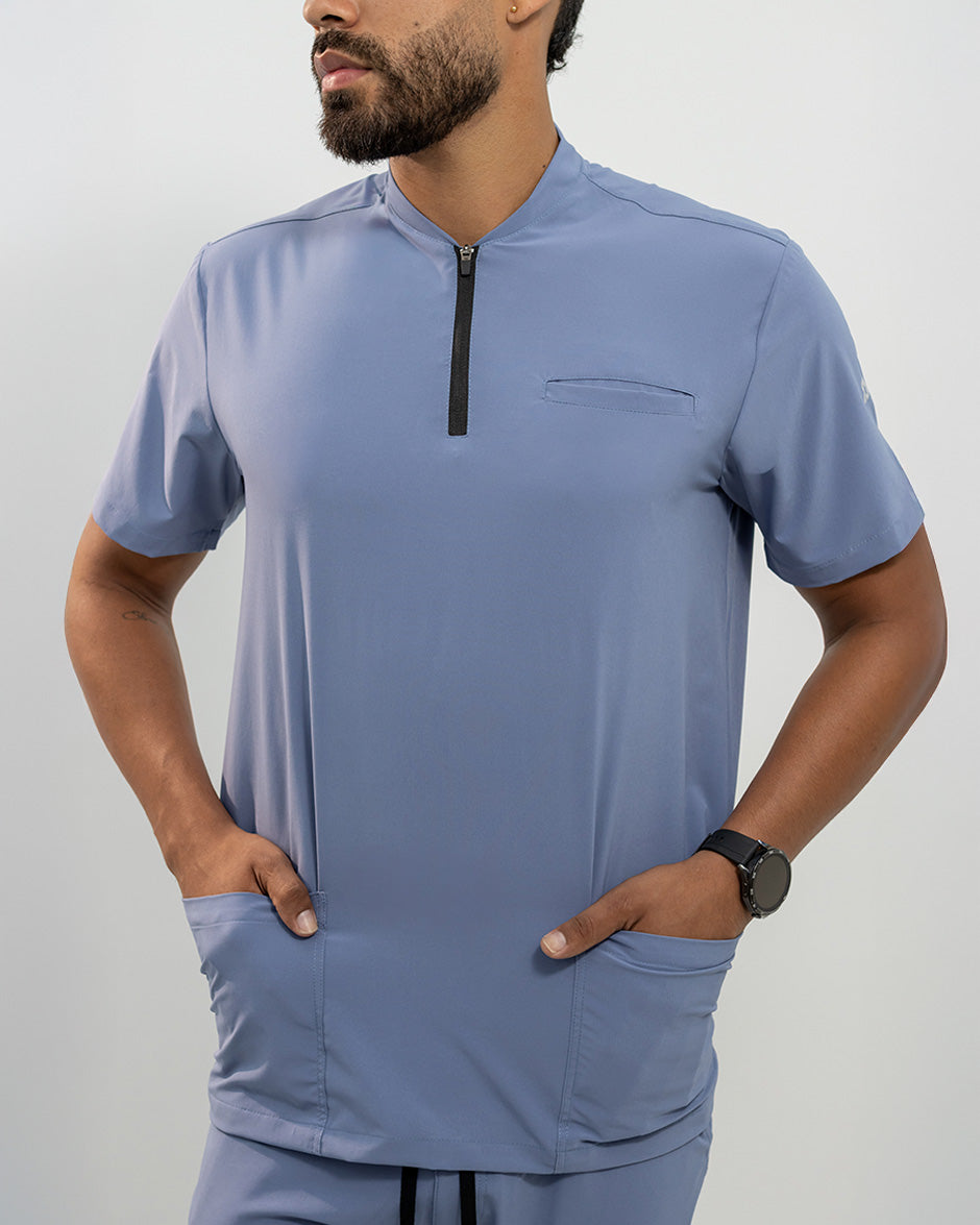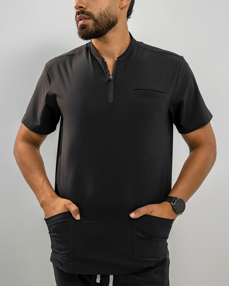 La camisa LEO es moderna y con un diseño super Clean. Se convertirá en uno de tus scrubs favoritos. Es de manga corta, silueta "slim fit" y cuello tipo Nerú. Cuenta con una cremallera en el cuello que le da un look deportivo y contemporáneo. Además tiene 3 bolsillos, 1 a la altura del pecho y dos laterales para que lleves todos tus elementos esenciales contigo.