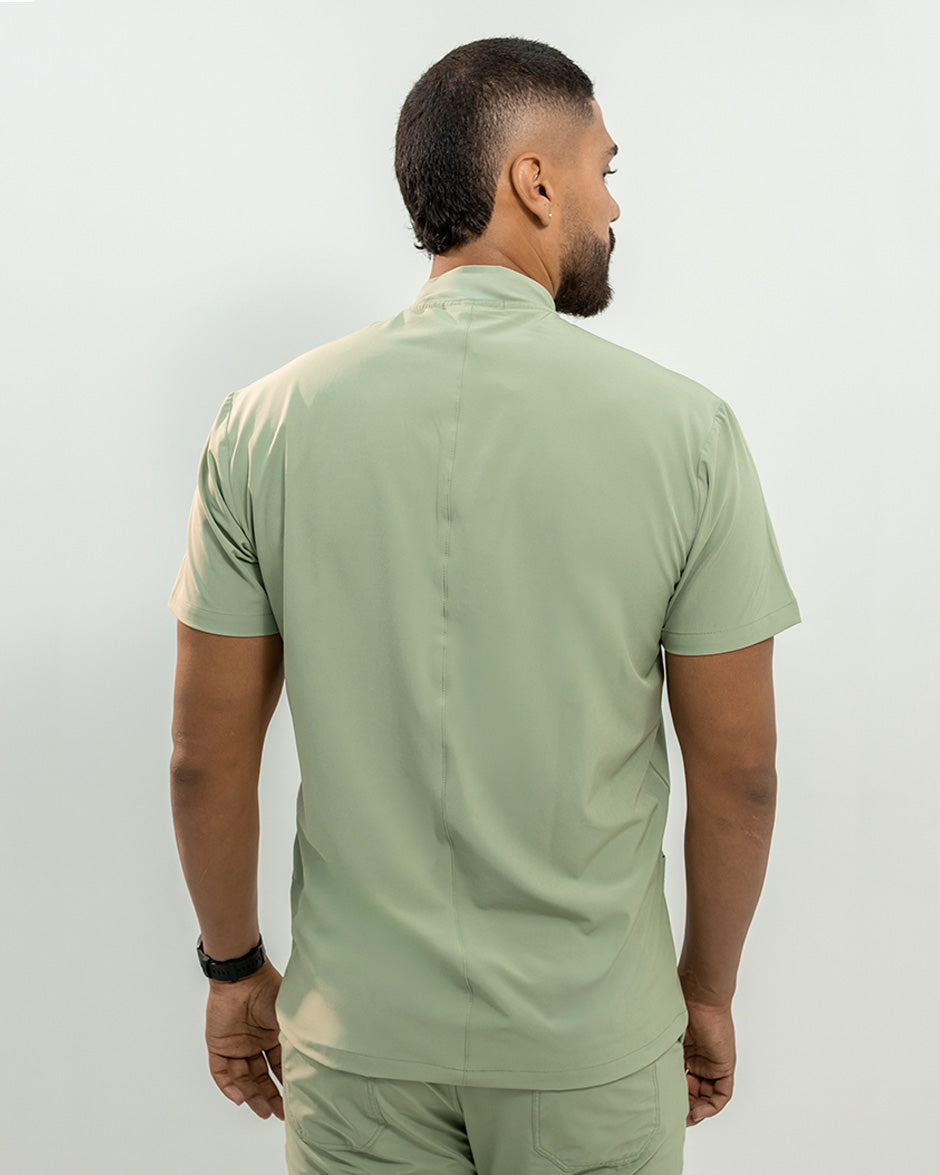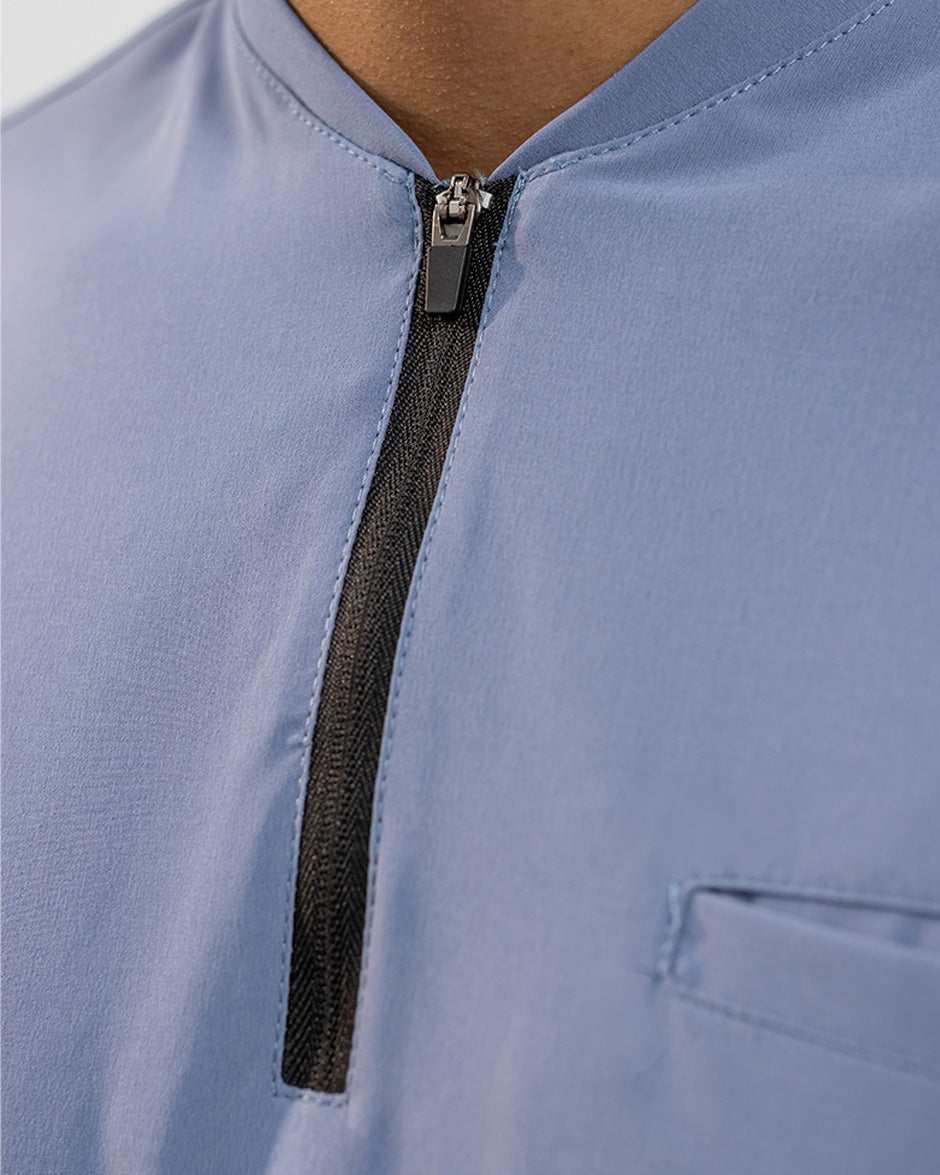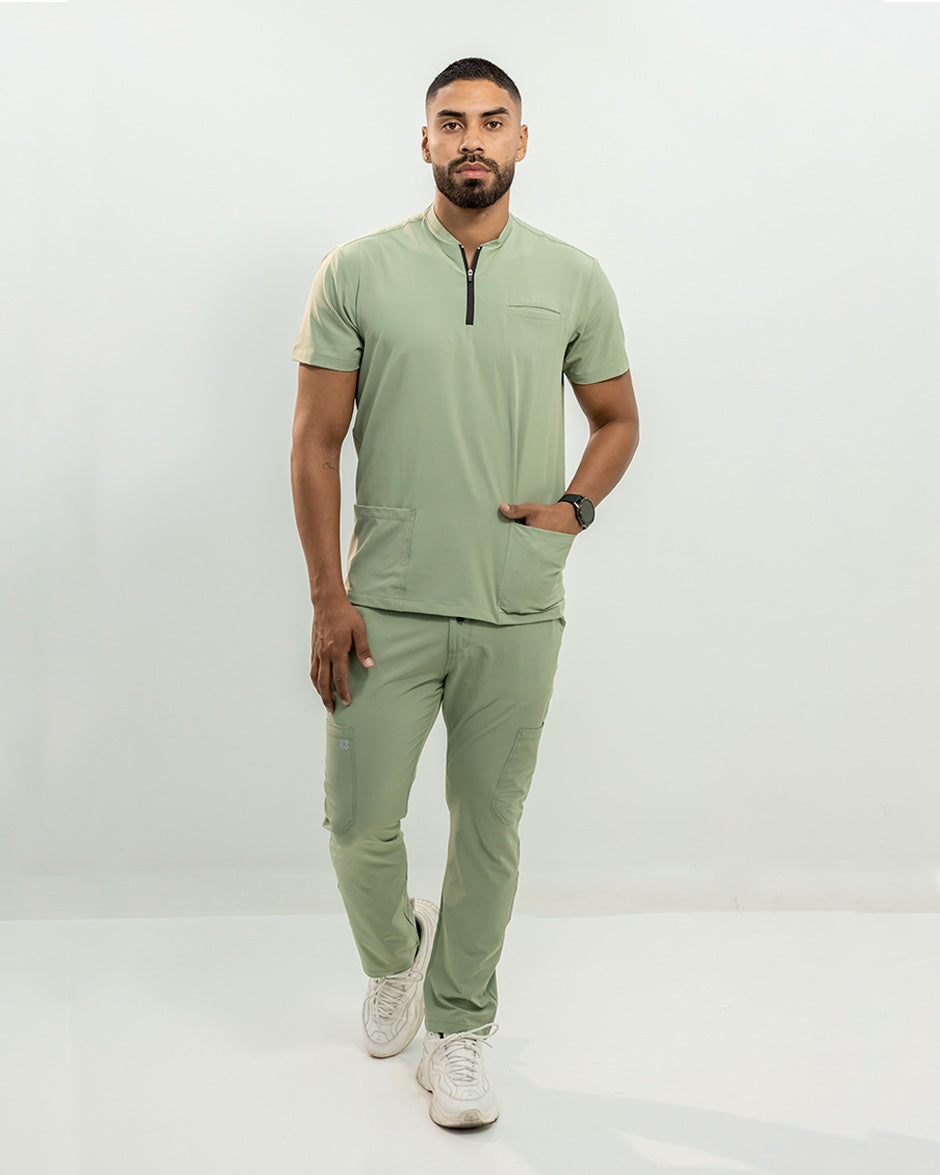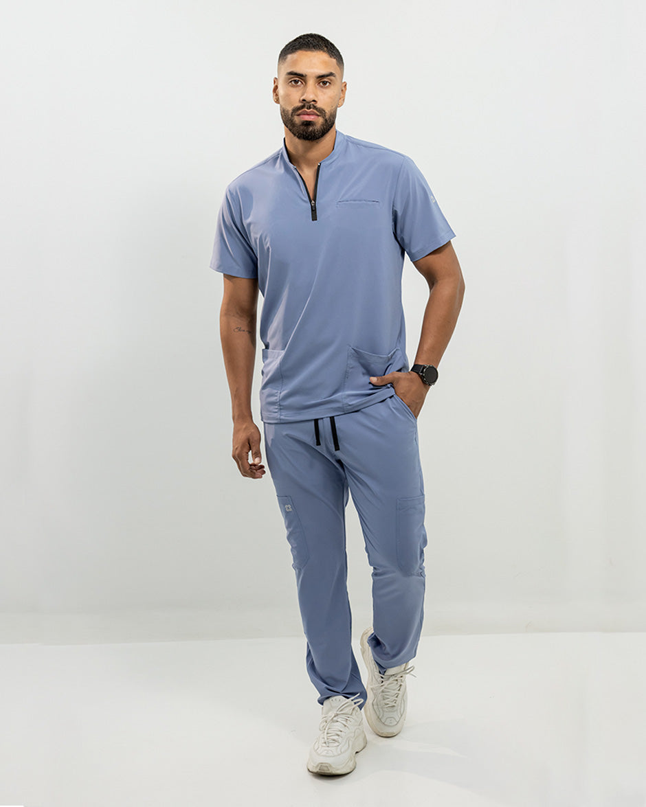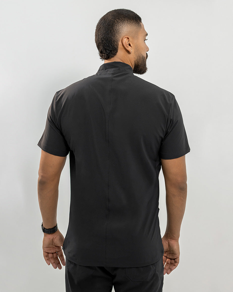 La camisa LEO es moderna y con un diseño super Clean. Se convertirá en uno de tus scrubs favoritos. Es de manga corta, silueta "slim fit" y cuello tipo Nerú. Cuenta con una cremallera en el cuello que le da un look deportivo y contemporáneo. Además tiene 3 bolsillos, 1 a la altura del pecho y dos laterales para que lleves todos tus elementos esenciales contigo.