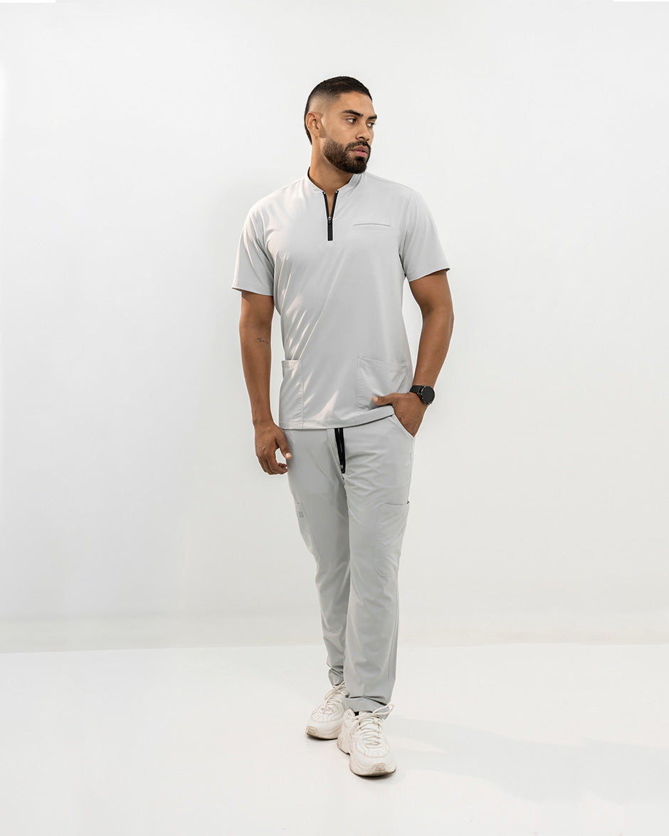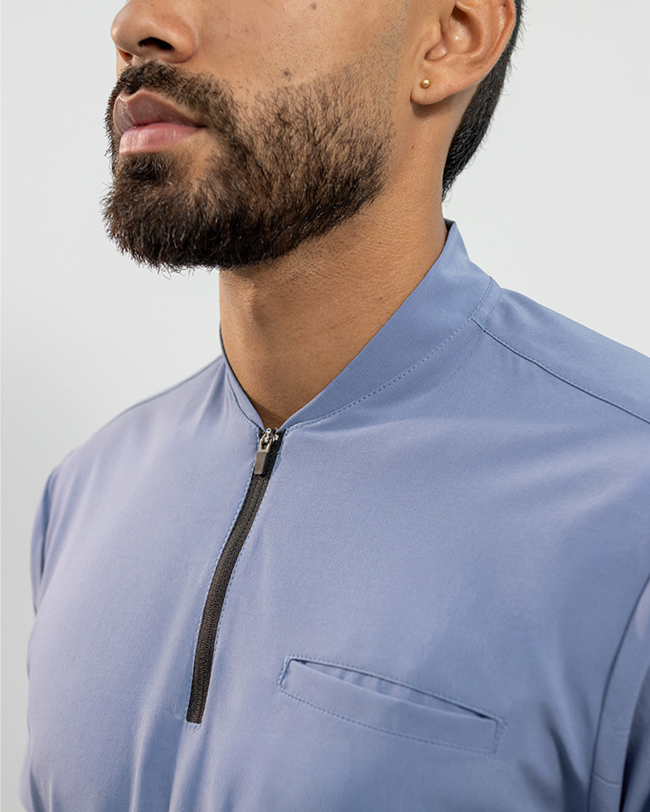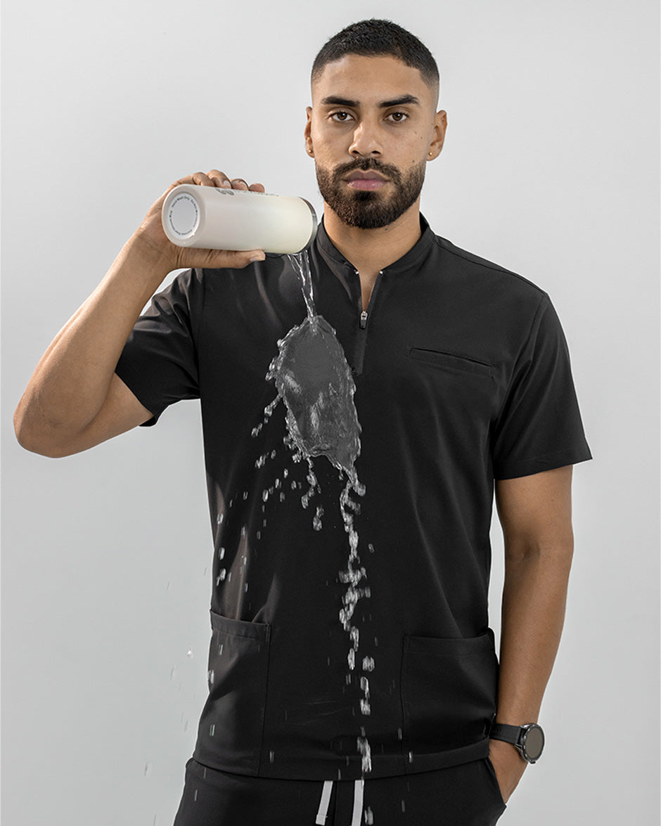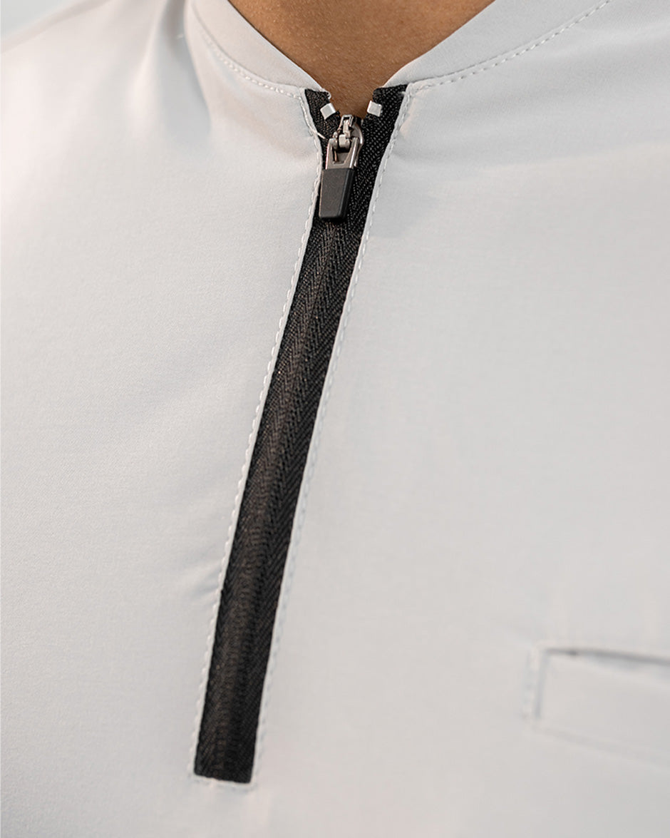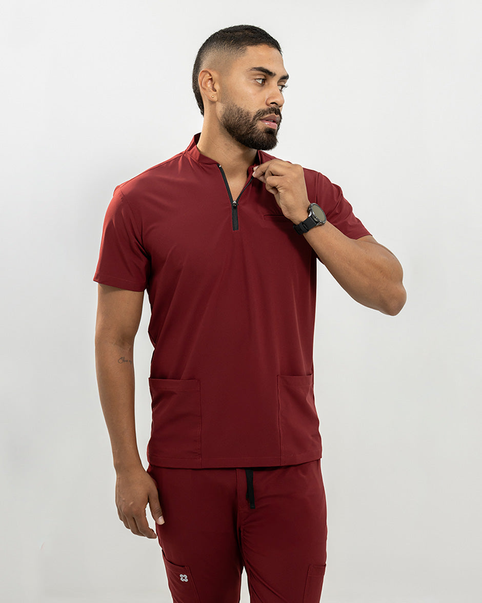 La camisa LEO es moderna y con un diseño super Clean. Se convertirá en uno de tus scrubs favoritos. Es de manga corta, silueta "slim fit" y cuello tipo Nerú. Cuenta con una cremallera en el cuello que le da un look deportivo y contemporáneo. Además tiene 3 bolsillos, 1 a la altura del pecho y dos laterales para que lleves todos tus elementos esenciales contigo.