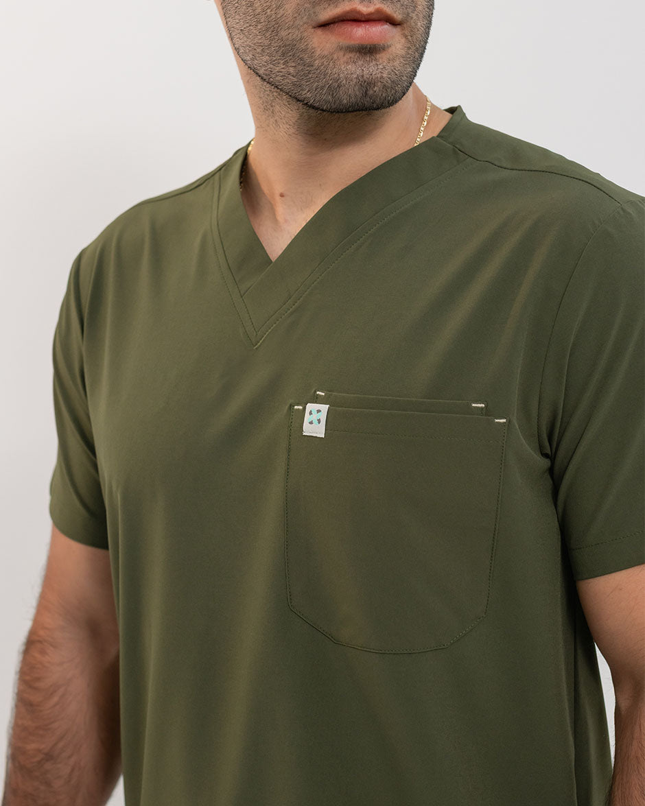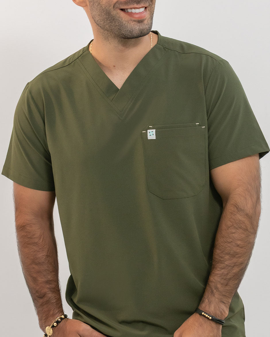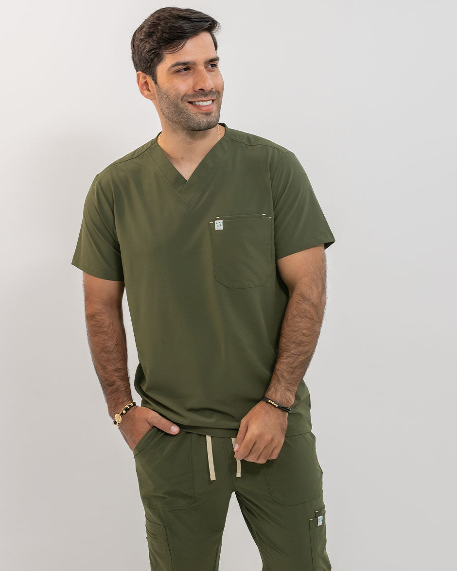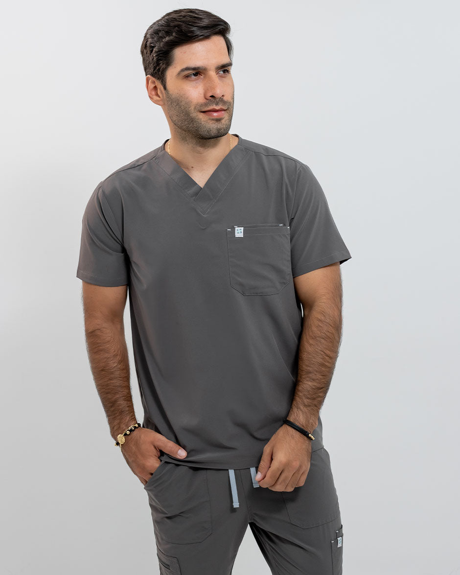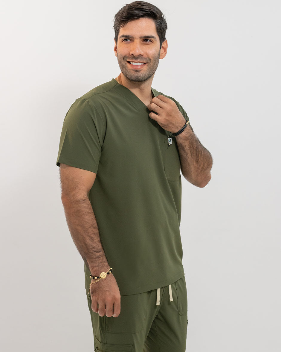La referencia MARS es una camisa quirúrgica con silueta tipo ´´regular fit´´, diseño de cuello V y bolsillo doble a la altura del pecho