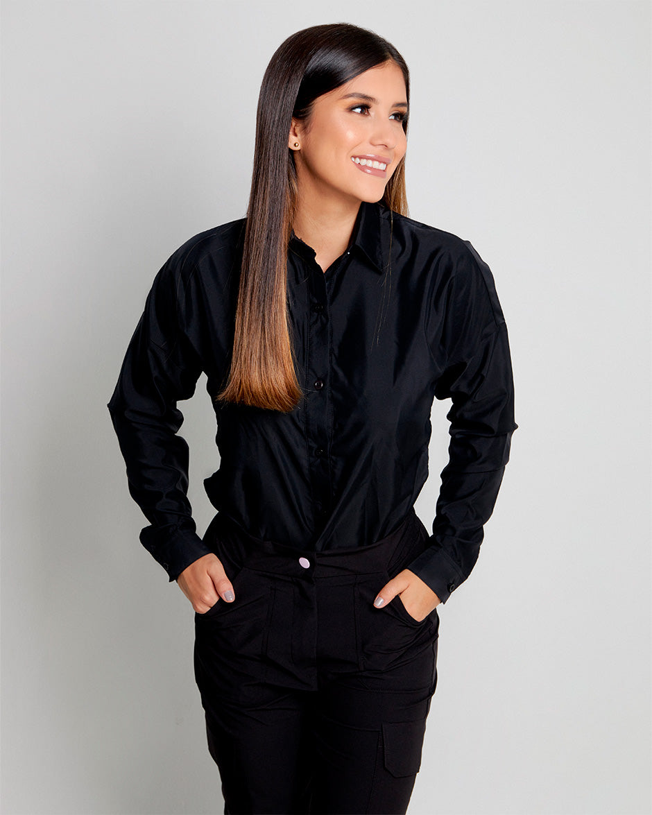 Camisero Electra de manga larga, con diseño elegante y versátil. Confeccionado en tela ligera y cómoda, cuenta con cierre de botones al frente y un ajuste moderno que resalta la figura. Ideal para un look profesional y sofisticado.