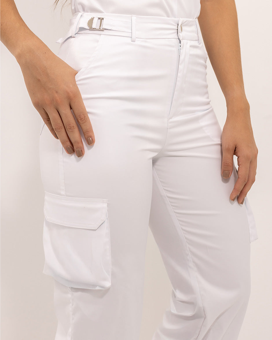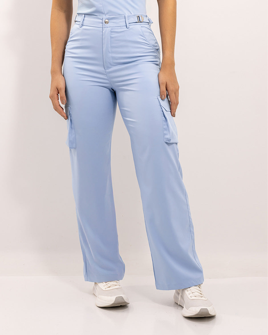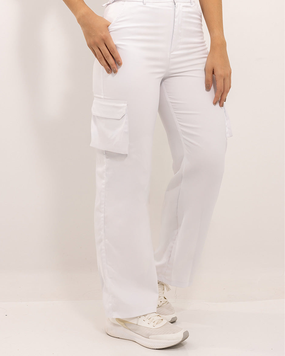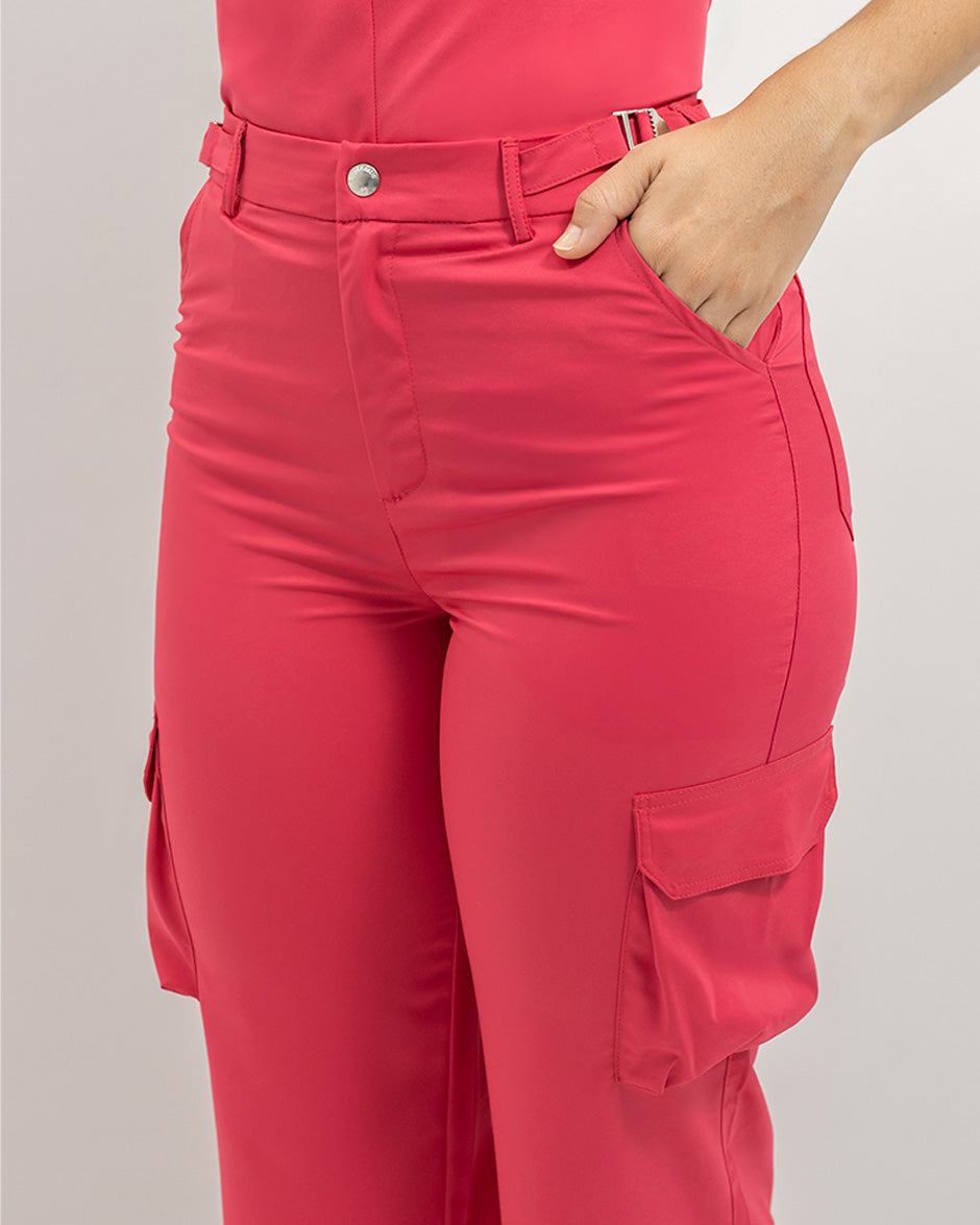 Pantalón bota ancha, con múltiples bolsillos, con pretina lisa y detalles con hebillas que te harán ver elegante y sofisticada.