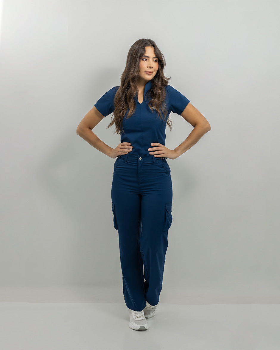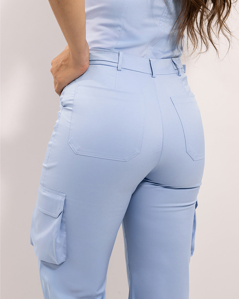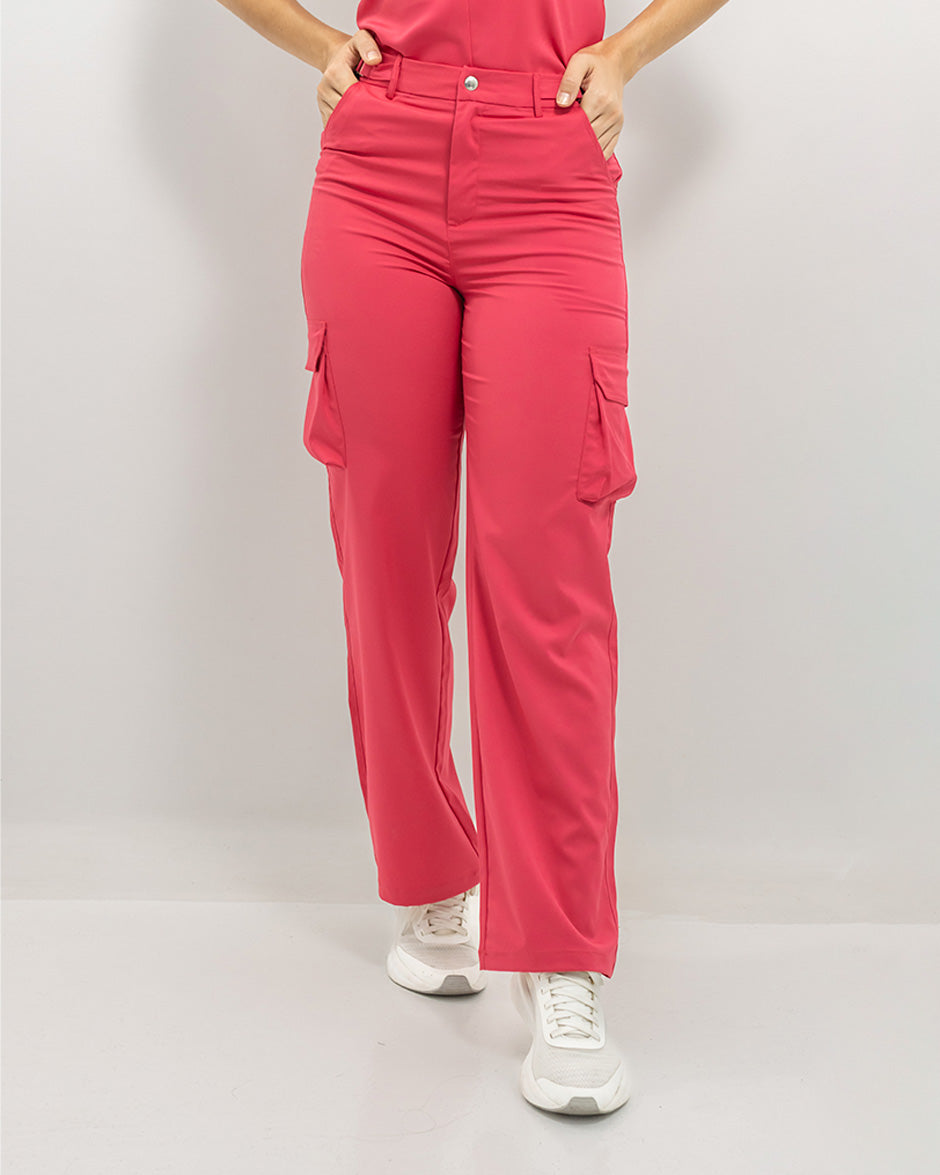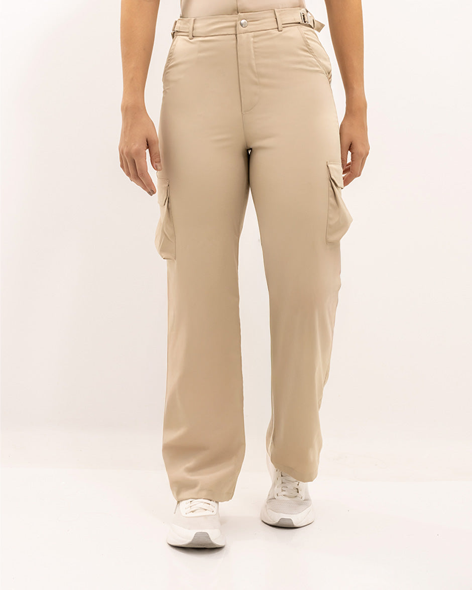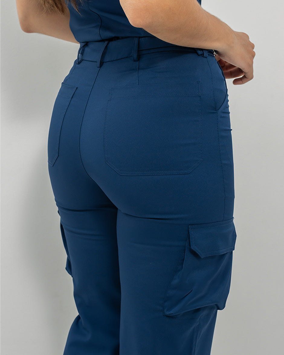 Pantalón bota ancha, con múltiples bolsillos, con pretina lisa y detalles con hebillas que te harán ver elegante y sofisticada.