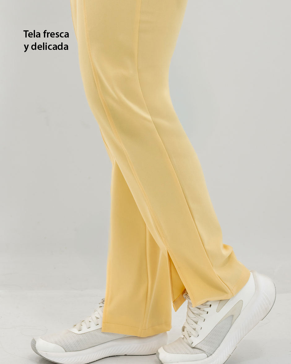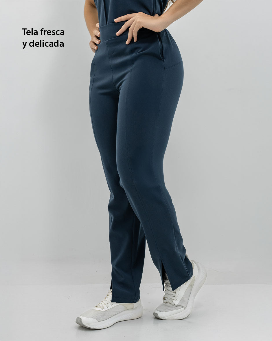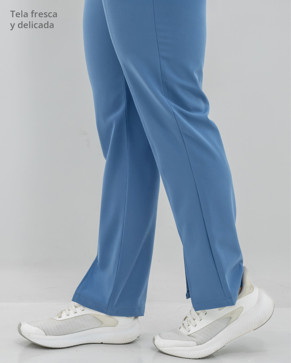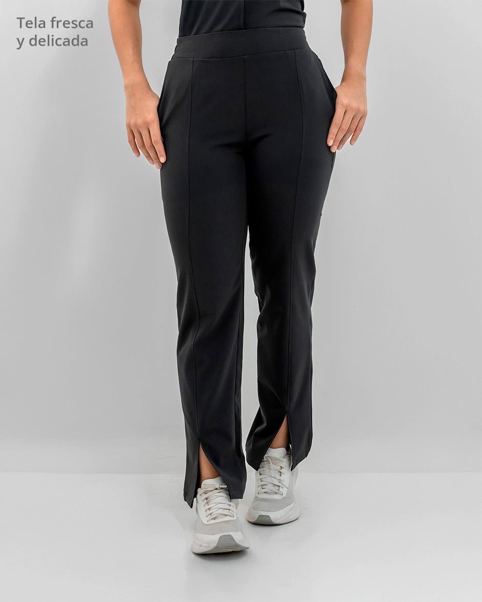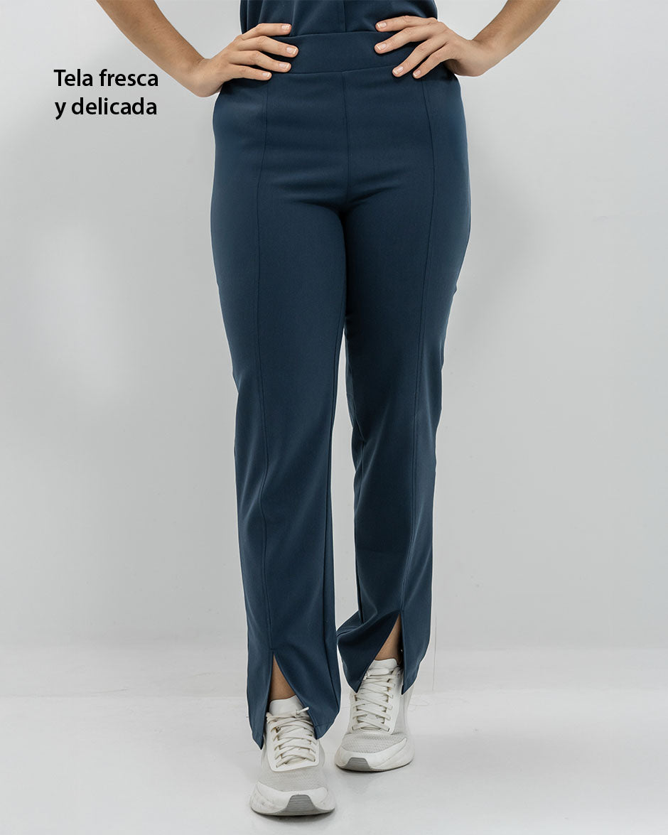 Pantalón bota recta con abertura frontal, bolsillos delanteros y pretina delantera lisa que te hace ver elegante sin perder la comodidad ya que en la parte trasera cuenta con elástico que se ajusta a tu cintura.