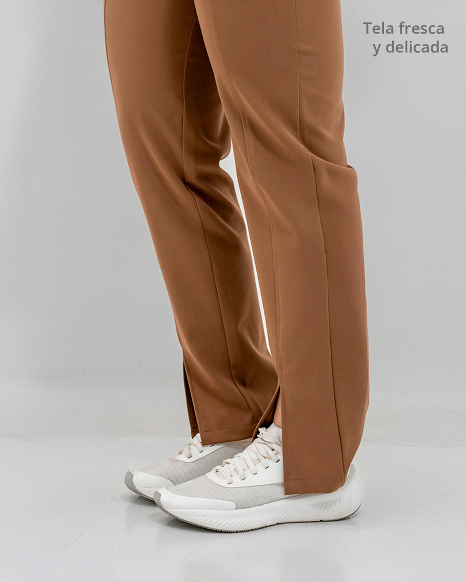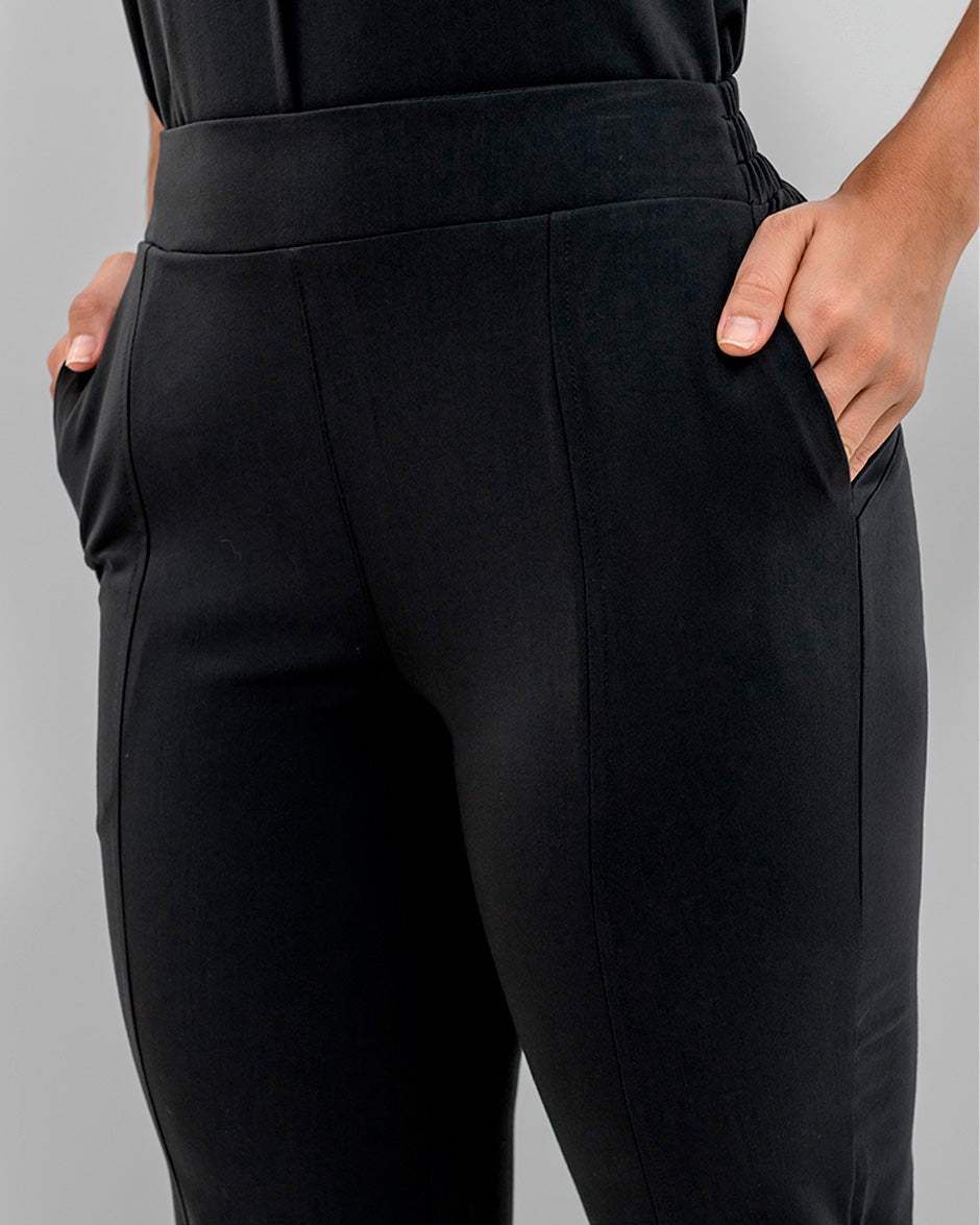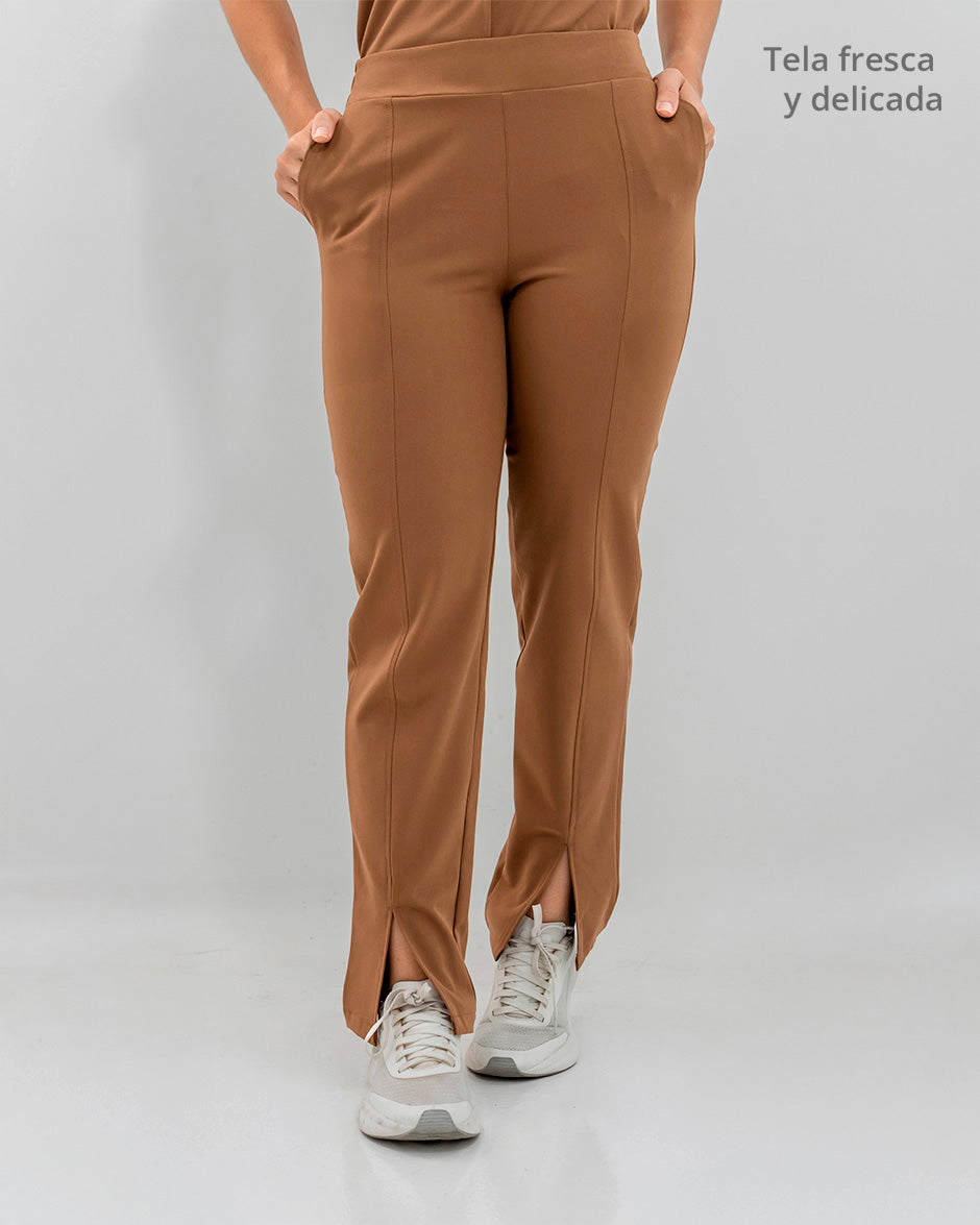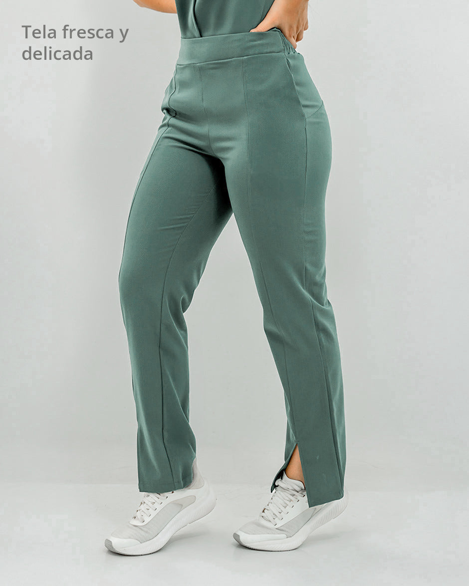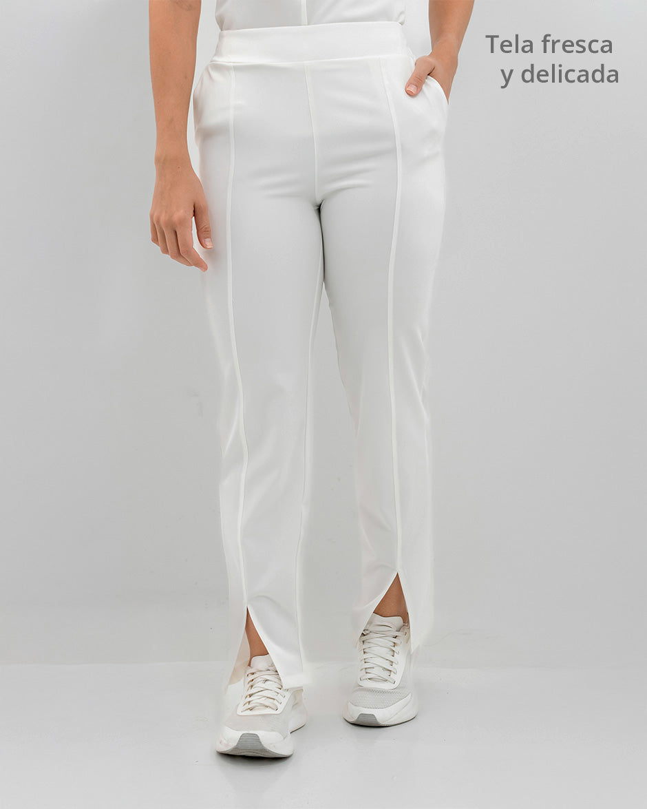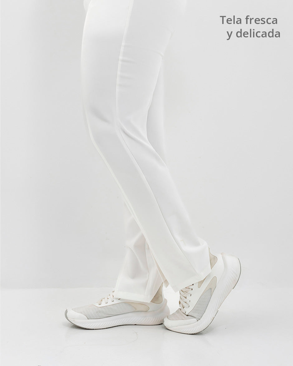 Pantalón bota recta con abertura frontal, bolsillos delanteros y pretina delantera lisa que te hace ver elegante sin perder la comodidad ya que en la parte trasera cuenta con elástico que se ajusta a tu cintura.