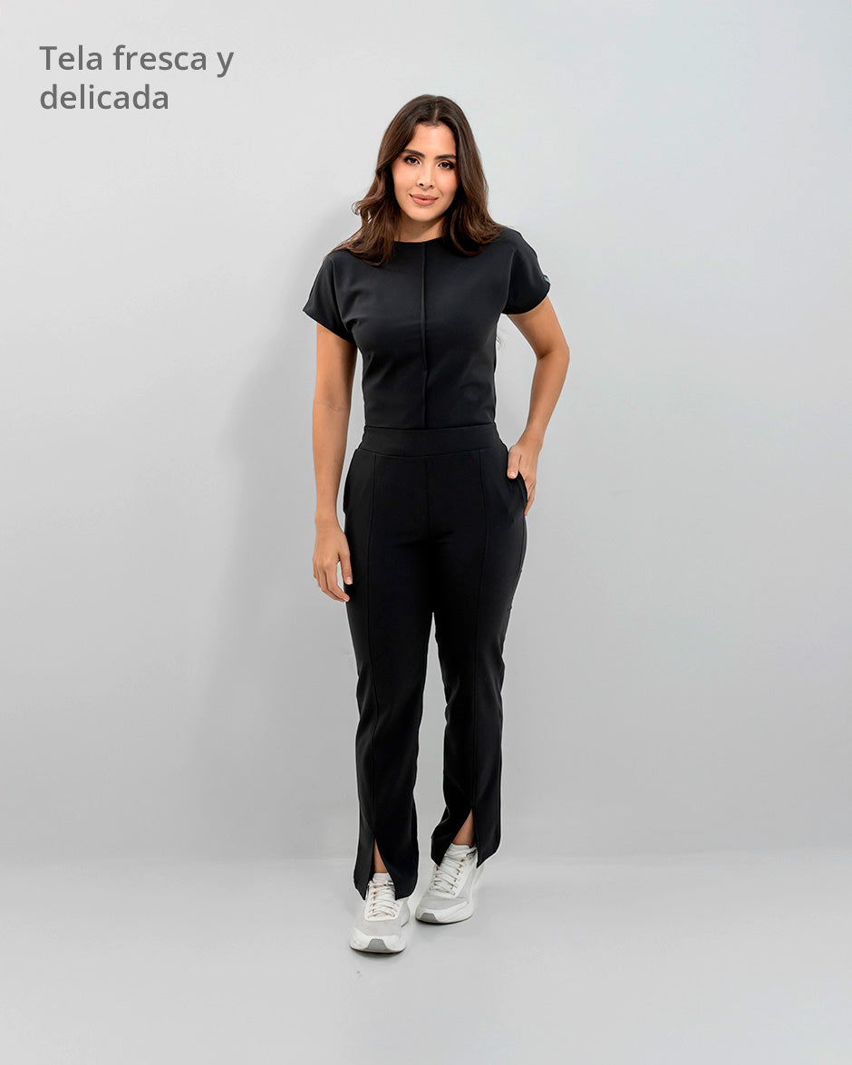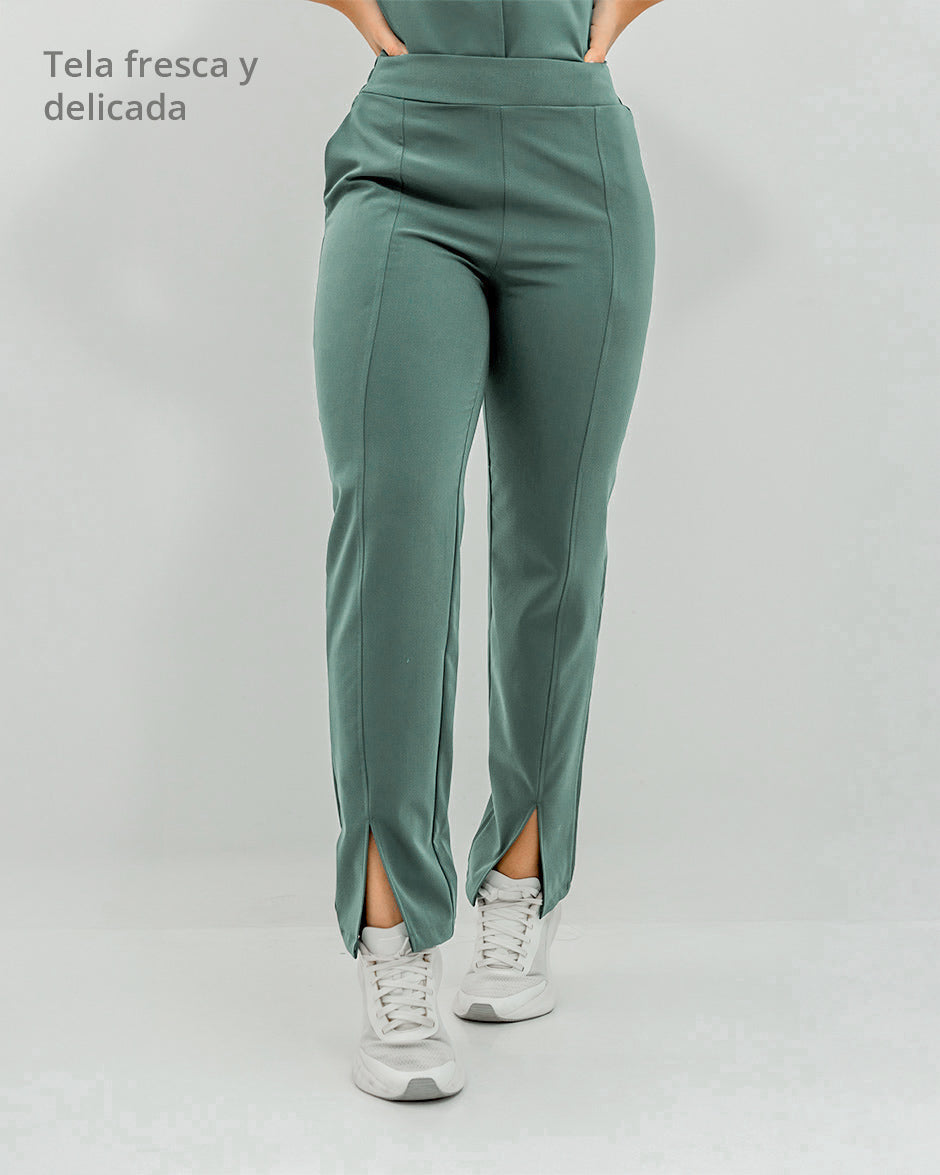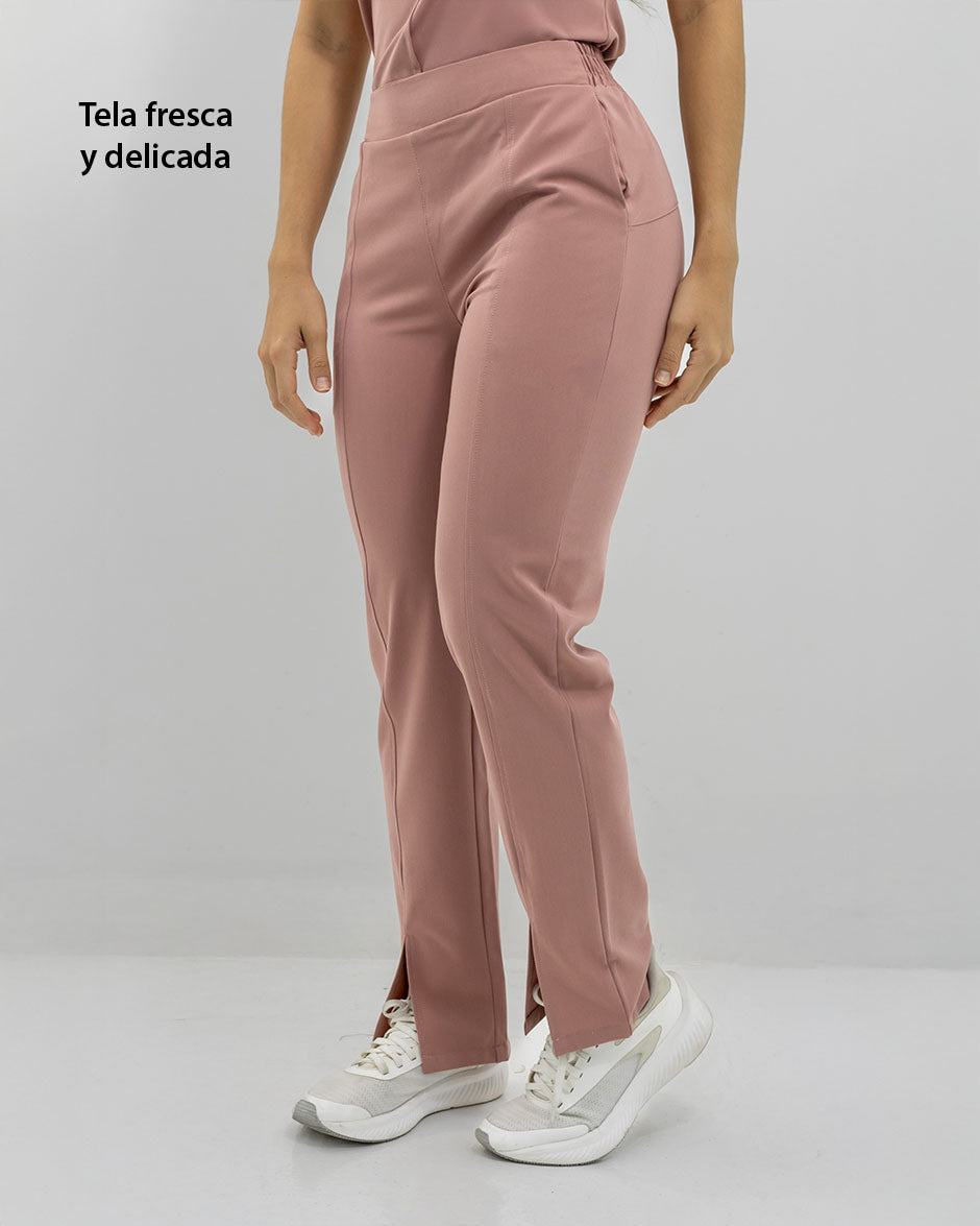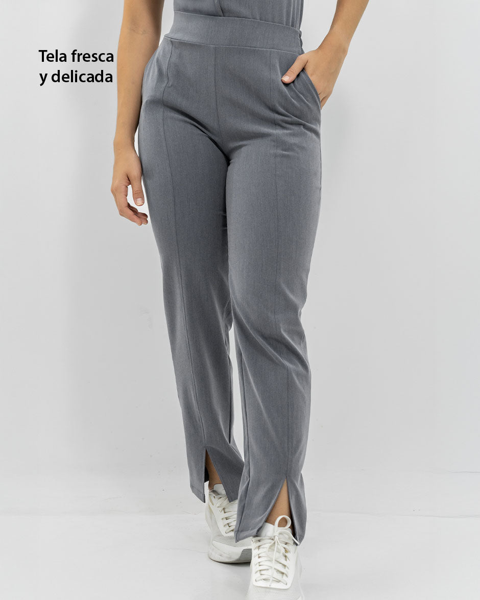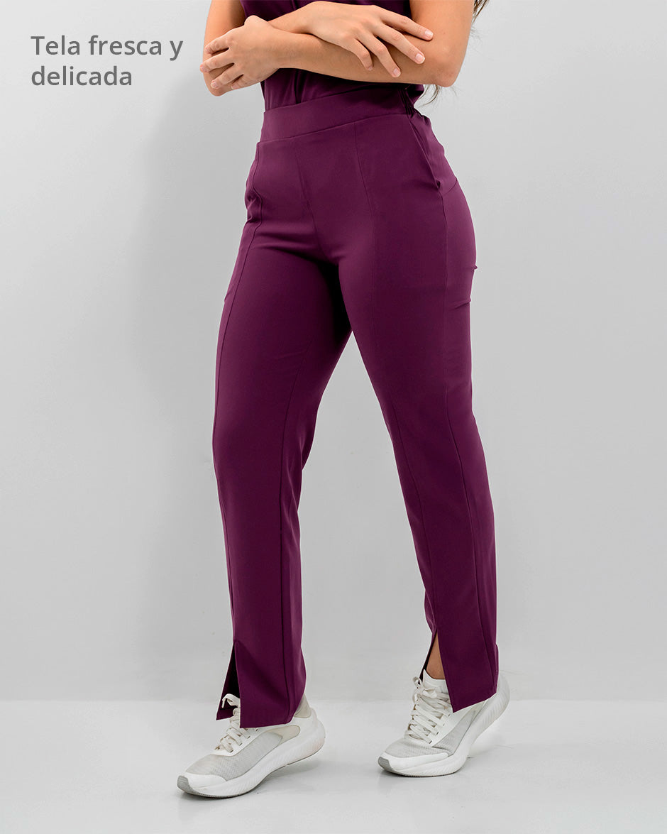 Pantalón bota recta con abertura frontal, bolsillos delanteros y pretina delantera lisa que te hace ver elegante sin perder la comodidad ya que en la parte trasera cuenta con elástico que se ajusta a tu cintura.