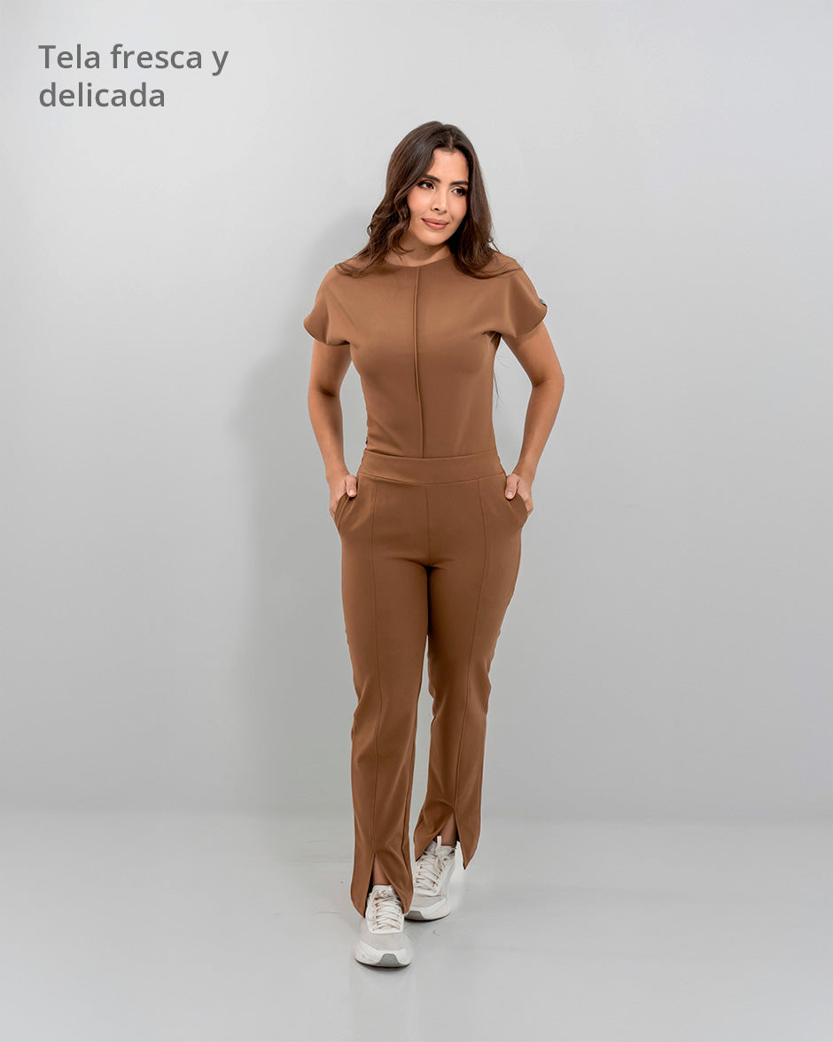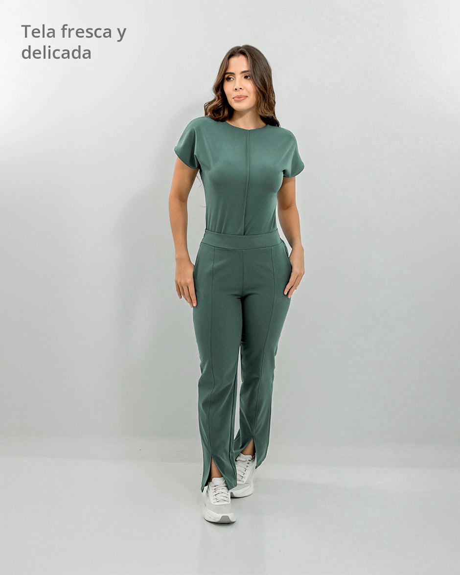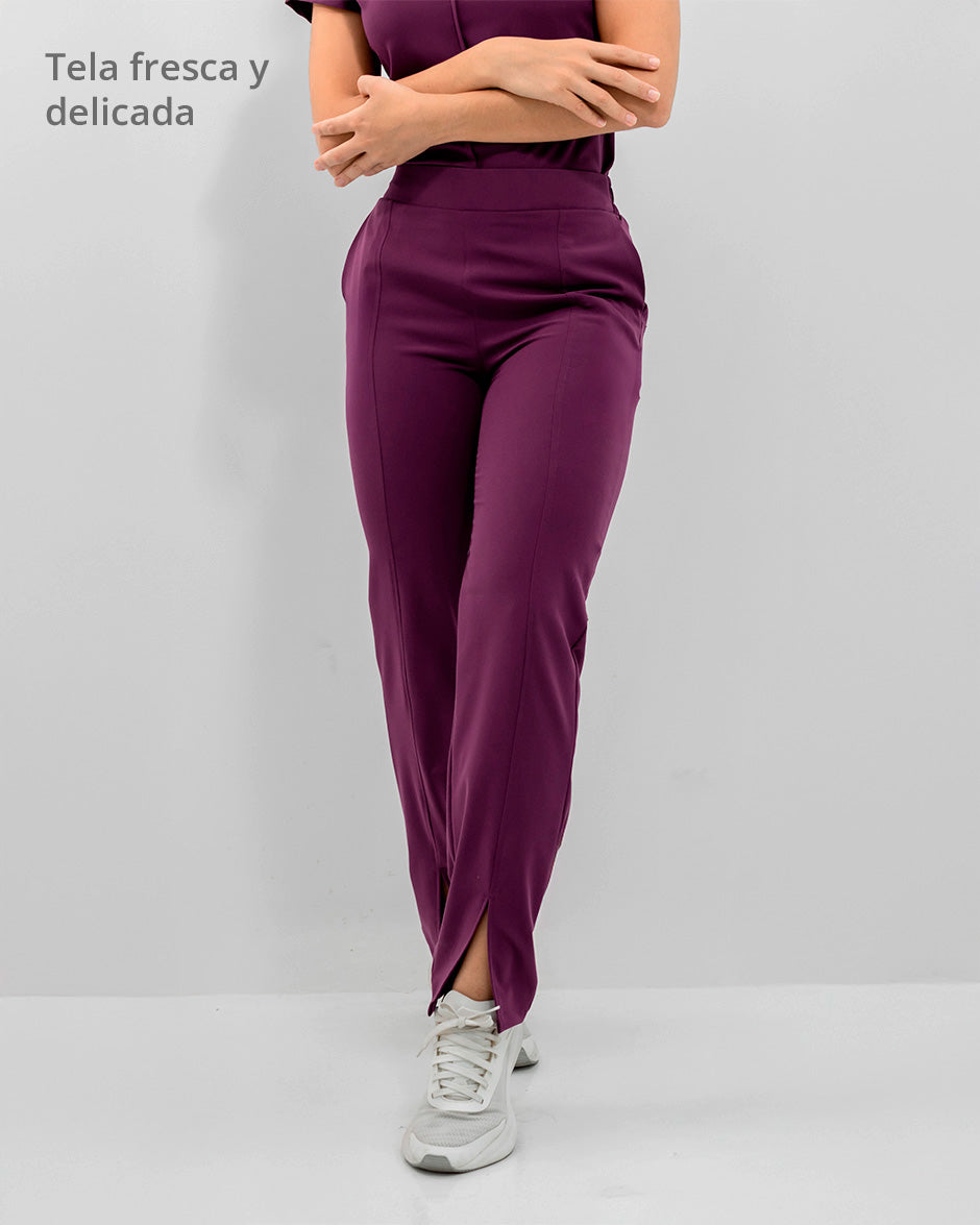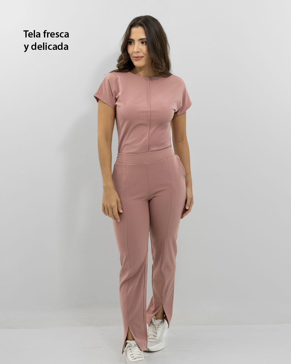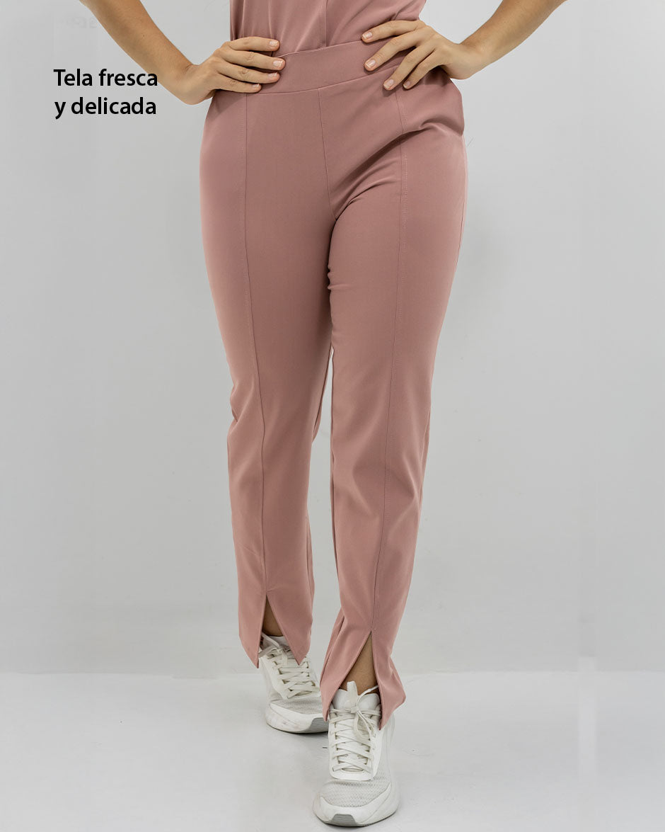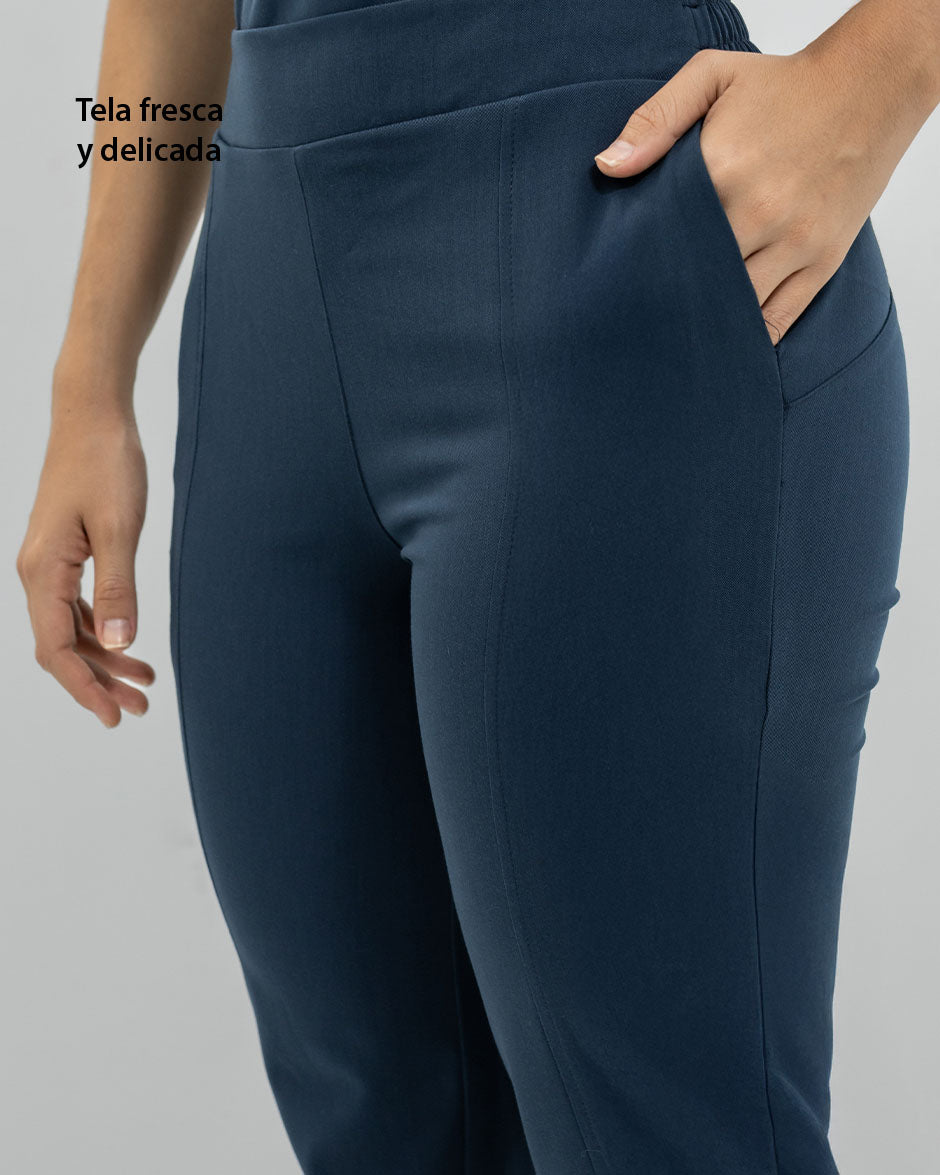 Pantalón bota recta con abertura frontal, bolsillos delanteros y pretina delantera lisa que te hace ver elegante sin perder la comodidad ya que en la parte trasera cuenta con elástico que se ajusta a tu cintura.